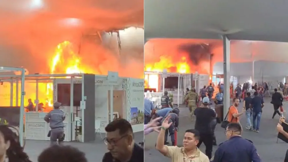 Na quinta-feira, dia 20 de novembro, um incêndio atingiu um dos pavilhões da Zona Azul, área de acesso restrito e dedicada às negociações oficiais da ONU. O local foi evacuado, mas as chamas foram rapidamente controladas e ninguém ficou ferido. O incidente causou uma paralisação temporária das atividades na área e a ONU transferiu o controle do perímetro para as autoridades brasileiras.